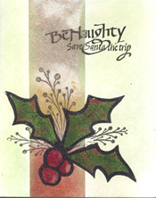 - Rubber stamp the holly with the gold pigment stamp pad,