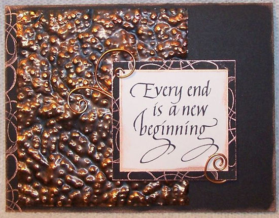 - Cut black cardstock to 5 ½" x 8" and fold in half. Rub edges