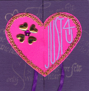 slit. Settle the purple card into the heart slits. Put this aside