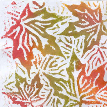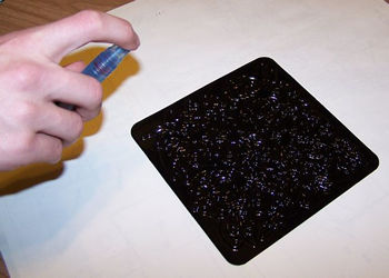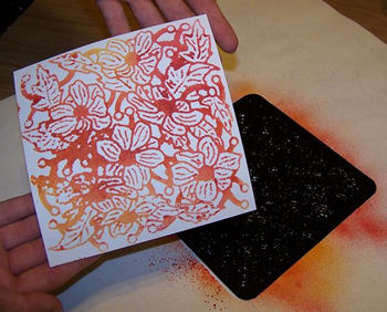 Cover your work area and lay a rubbing plate in the center. Spray the plate with one or more colors of spray. | ||