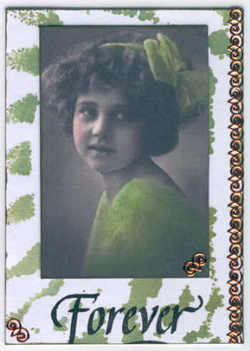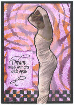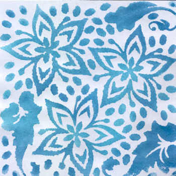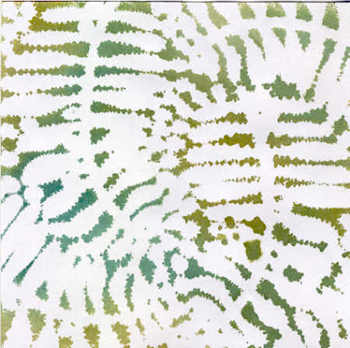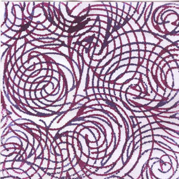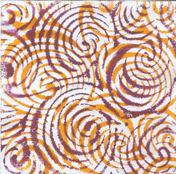 Background #3 This was done with the flip side of the same rubbing plate as background #2 using the same technique. The first printing was with diluted Color Wash butterscotch. The second printing was diluted Color Wash wild plum. |