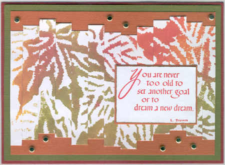Background #5 This is the same rubbing plate as background #4 but the reverse side and I used the same colors as background #4. |