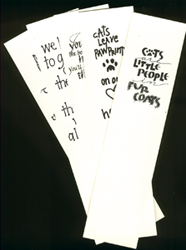 Here are samples of my creations, but you could decorate till the cows come home (or the kitties...) The Cat stamp on the sleeve is a foam stamp of unknown origin that I've had for years. Some of the Just Cats die-cuts will fit on the sleeve. |