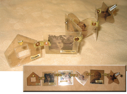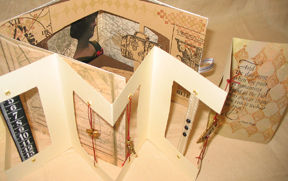 Mini Mica Memories This darling little accordion book will charm anyone who sees it. We will sandwich transparencies between sheets of mica and add delightful touches to create a very special book. Extra tools: Hammer, punch and eyelet setter If you can't get to the class, check out the kit on my site here! |