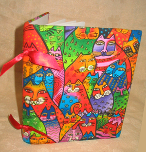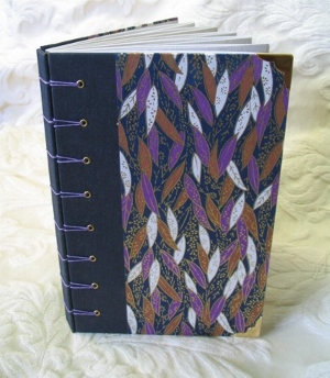 Fabric Covered Ribbon Journal This is a hardcover book which will lie flat when opened and is perfect for a journal or notebook or can be alternated with photo album pages for a truly special book. Signatures are stitched over ribbons which then appear tied across the spine when the book is completed. |