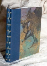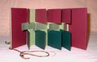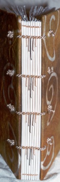 The Pipe Organ binding is stitched over cords. It looks complicated, but it really isn't! Like the Coptic stitched books, it's attractive because you don't have to worry about hinges. A variety of coloured threads can be used for the "pipes", which makes it even more versatile. The book block is attached to the cover with the cords which are threaded through the cover. 6 hr. If you can't get to the class, check out the kit on my site here! |